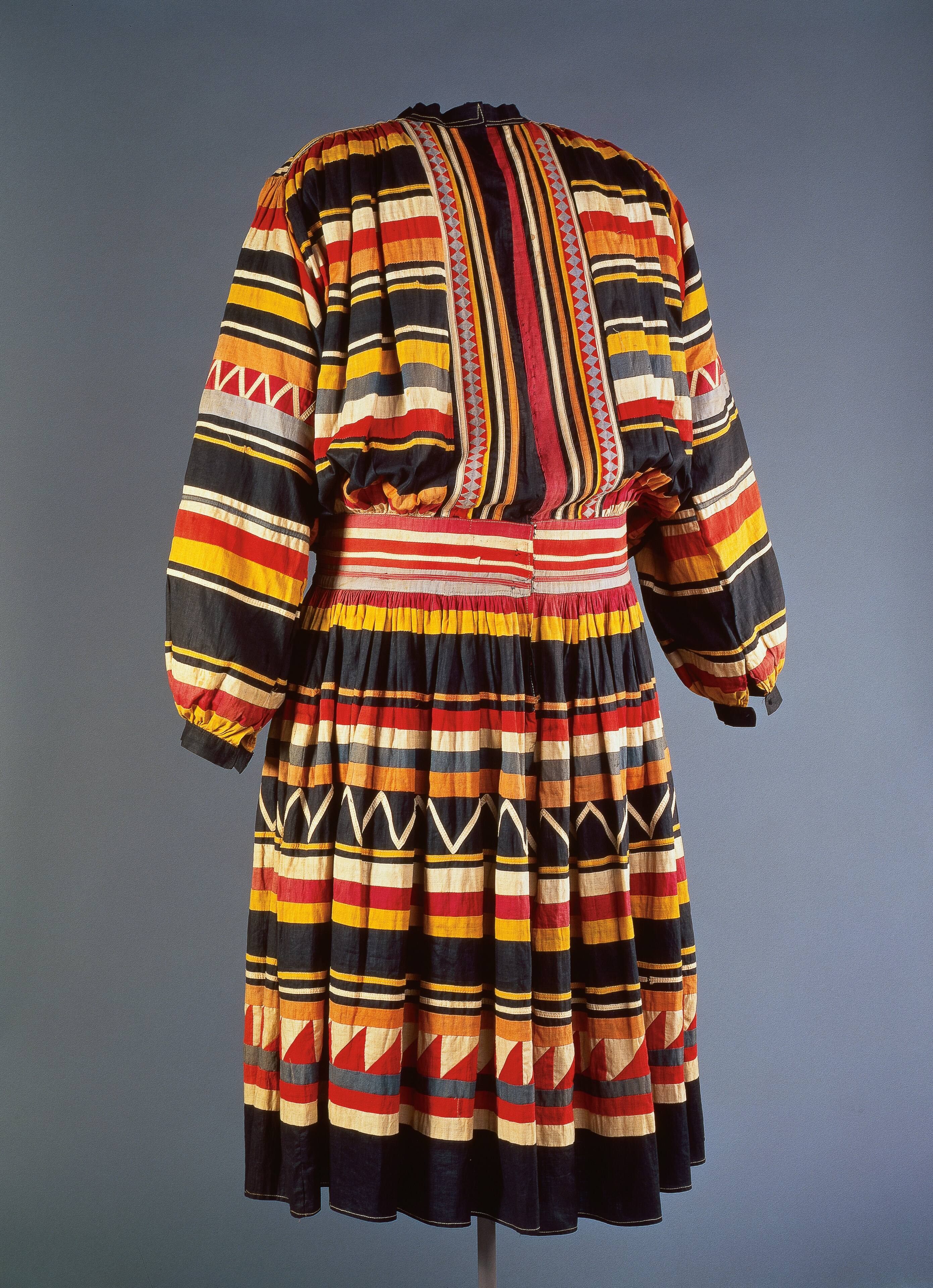 Label TextThis man’s shirt sometimes referred to as a big shirt, features the rich colors and bold patterns associated with Seminole clothing. Long patchwork strips are sewn together and the resulting fabric is then cut to make shirts for men and boys or skirts for women and girls. Over time the designs have become more complicated, and today some Seminole people wear this type of colorful clothing on special occasions.Exhibition History"Art Des Indiens D'Amerique Du Nord Dans La Collection D'Eugene Thaw," Mona Bismarck Foundation, Paris, France, Somogy Editions D'Art, January 21, 2000 - March 18, 2000.