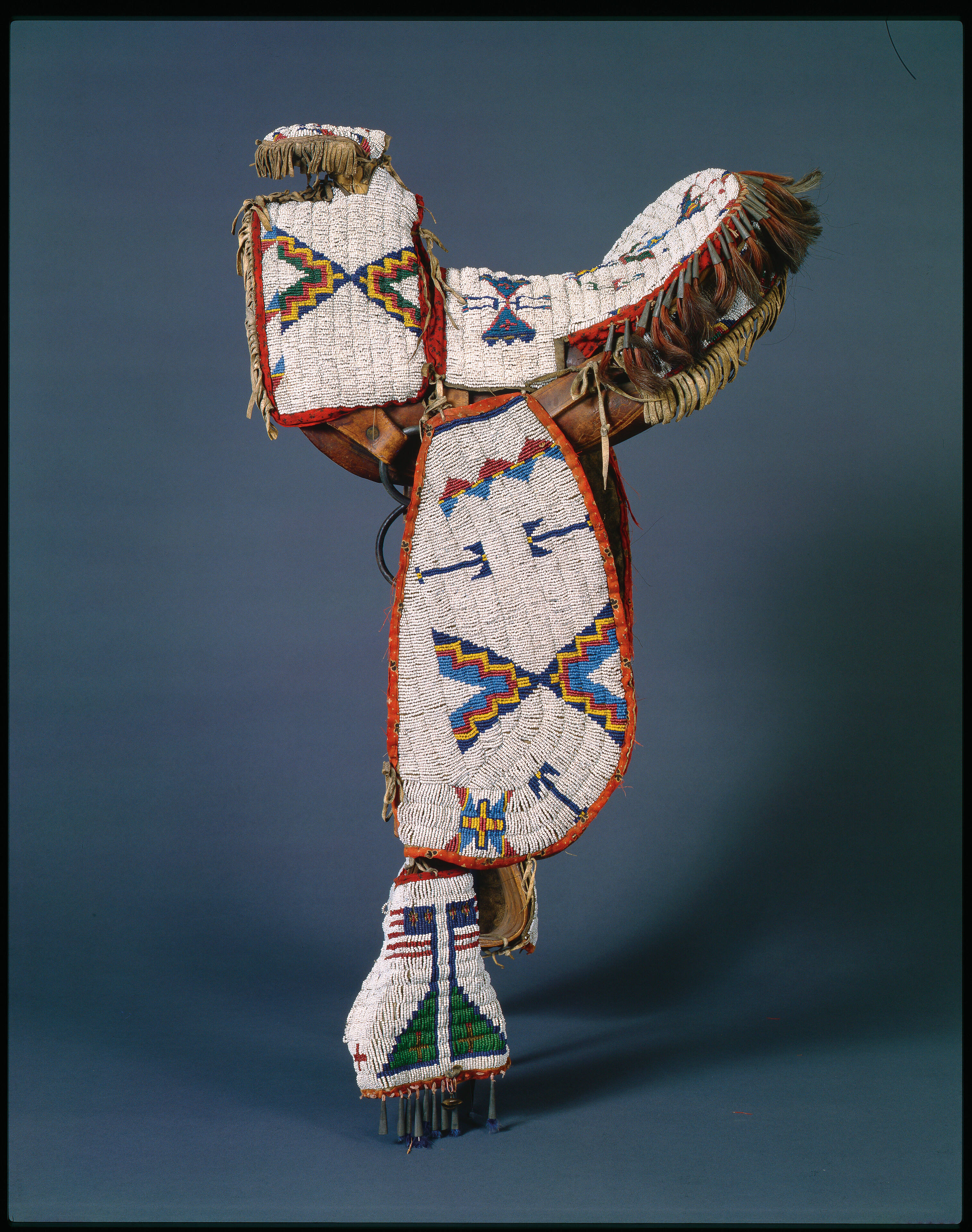 Label TextThe American flags on the stirrups of this saddle suggest that it was used in Fourth of July parades and other celebrations. Symbolic imagery played an important role at these types of events. Appropriate appearances at social functions demonstrated family pride, and children were considered representatives of their families.