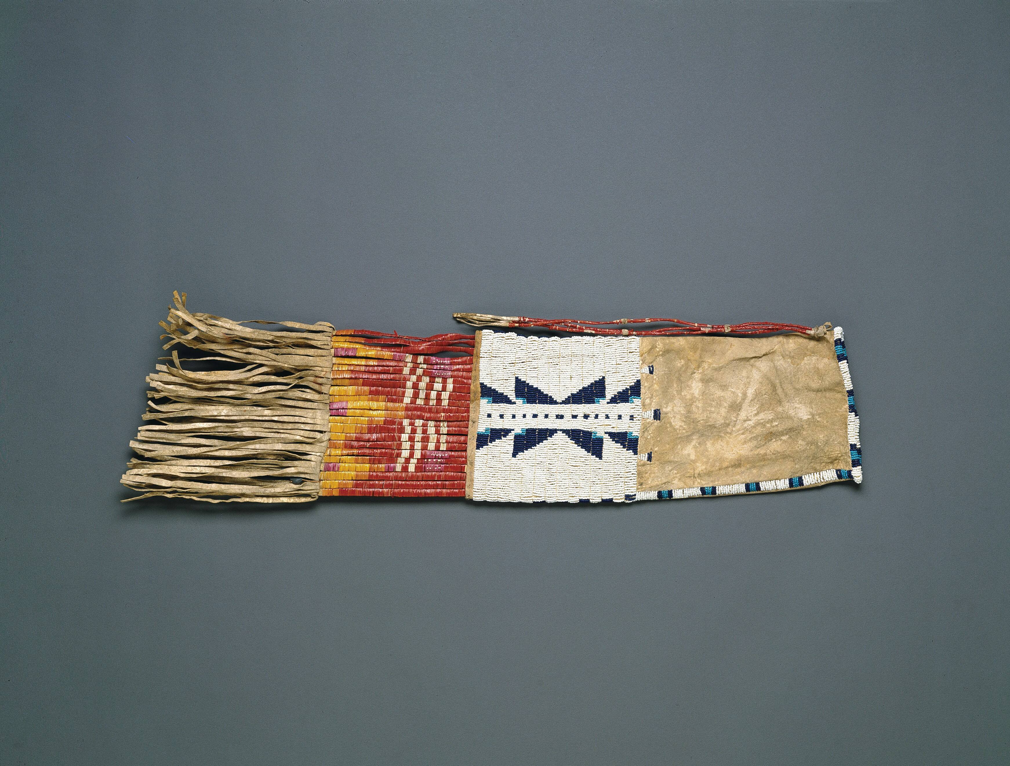 Label TextPipe bags held the owner’s pipe bowl, pipe stem, tobacco, and other important objects. Men carried pipe bags at formal social functions and ceremonies.Exhibition HistoryMuseum of Our National Heritage, Lexington, MA, December 6, 1994 - May 2, 1995.